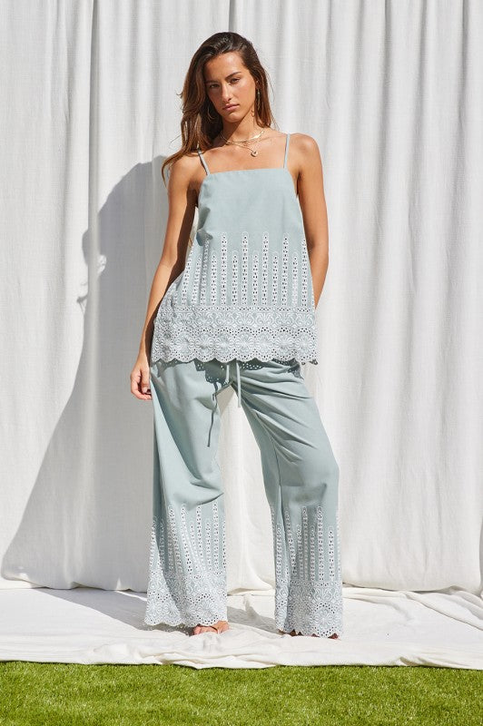 Embroidery Side Slit Pants