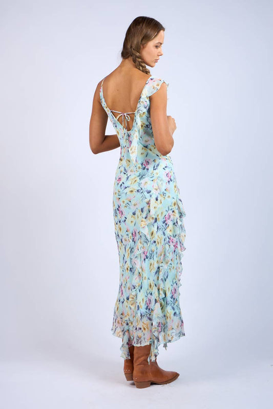 Floral Print Ruffle Maxi Dress