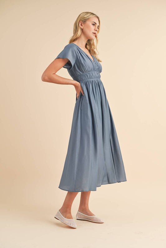 Satin Flutter Sleeve Midi Dress