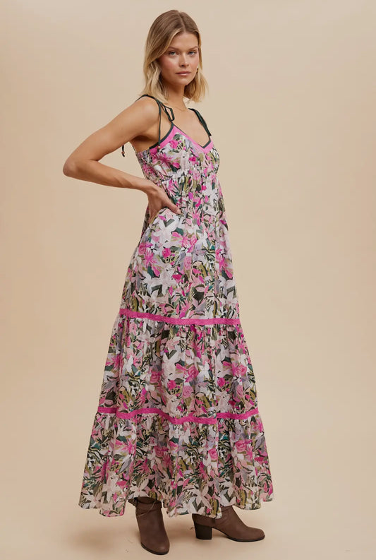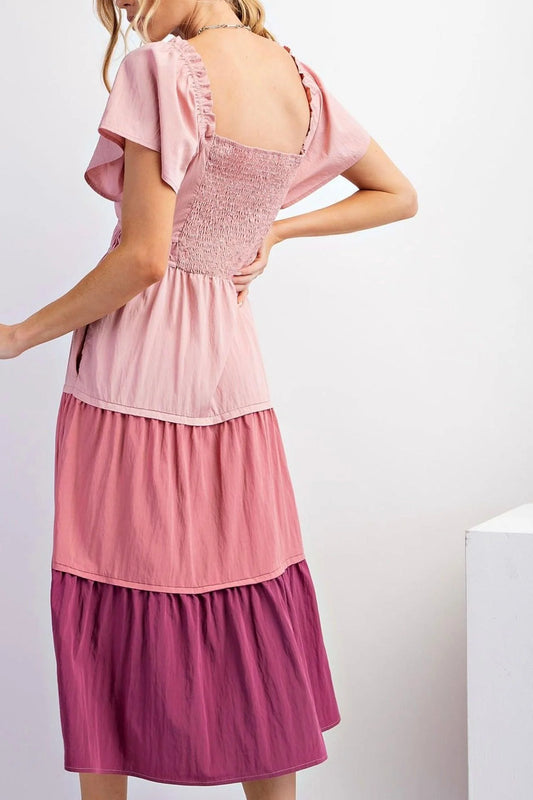 Short Sleeve Color Mix Cotton Poplin Maxi Dress