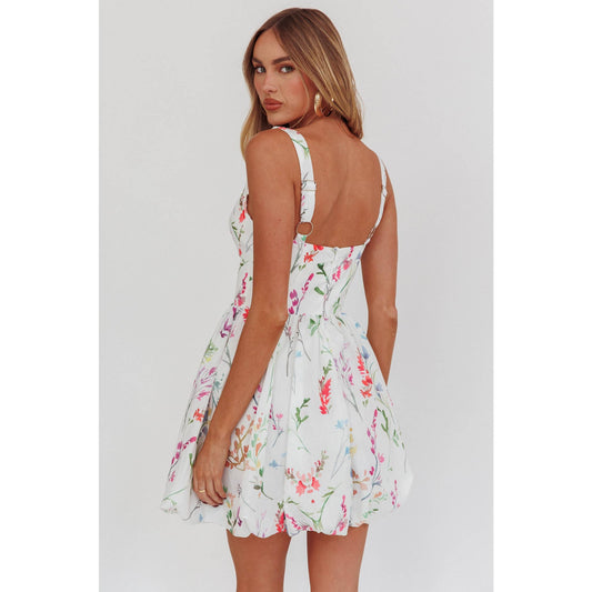 Jacquard Floral Sweetheart Smocked Mini Dress