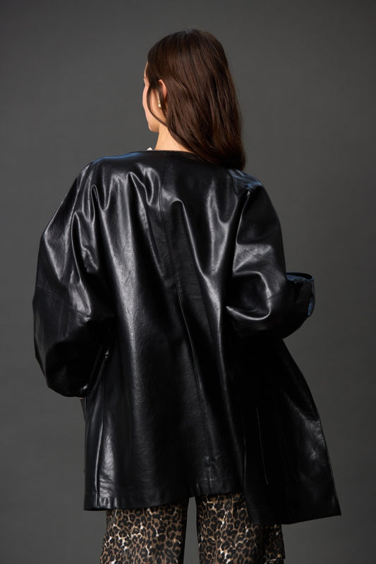 Faux Leather Billowy Sleeve Jacket