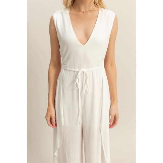 V-Neck Side Cutout Curved Hem Jumpsuit