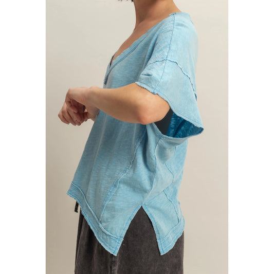 Sold outRaw Edge V-Neck Oversized T-Shirt