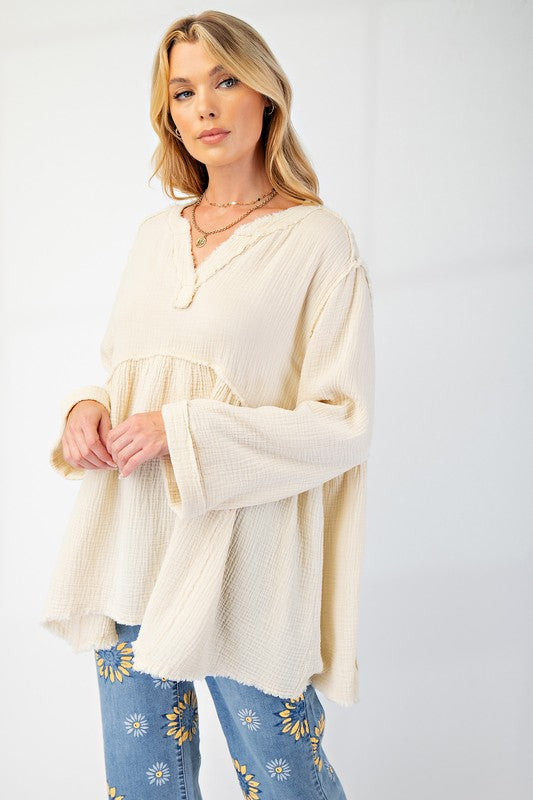 Mineral Washed Cotton Gauze Babydoll Tunic