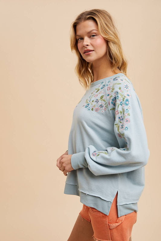 Daisy Patch Mineral Washed Terry Knit Pullover