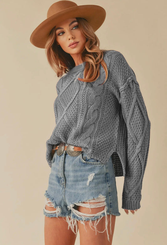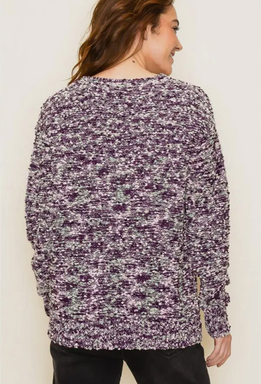 Asymmetrical Colorblock Back Tie Knit Sweater