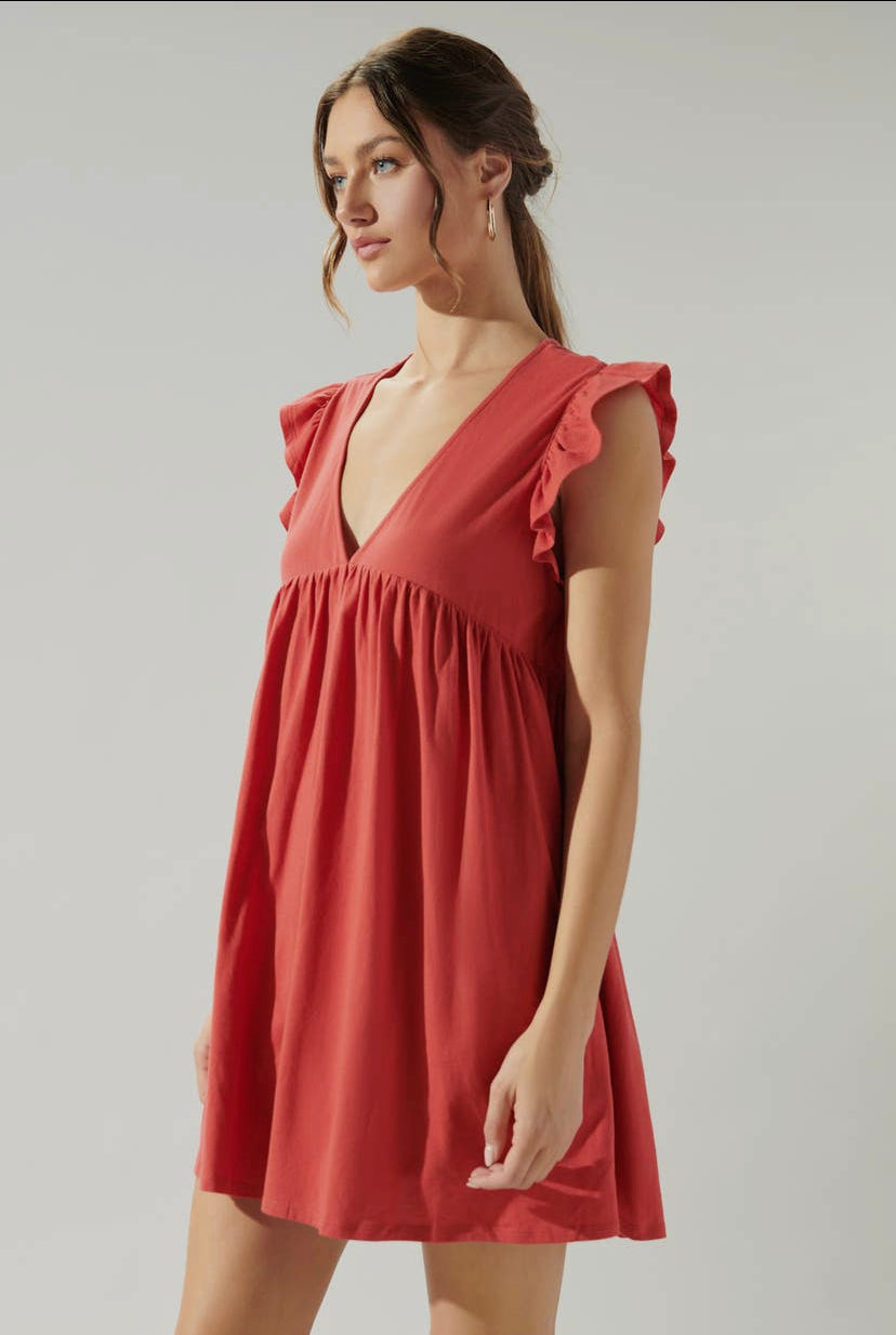 - Cotton knit - Babydoll - Flutter sleeves - Shorts