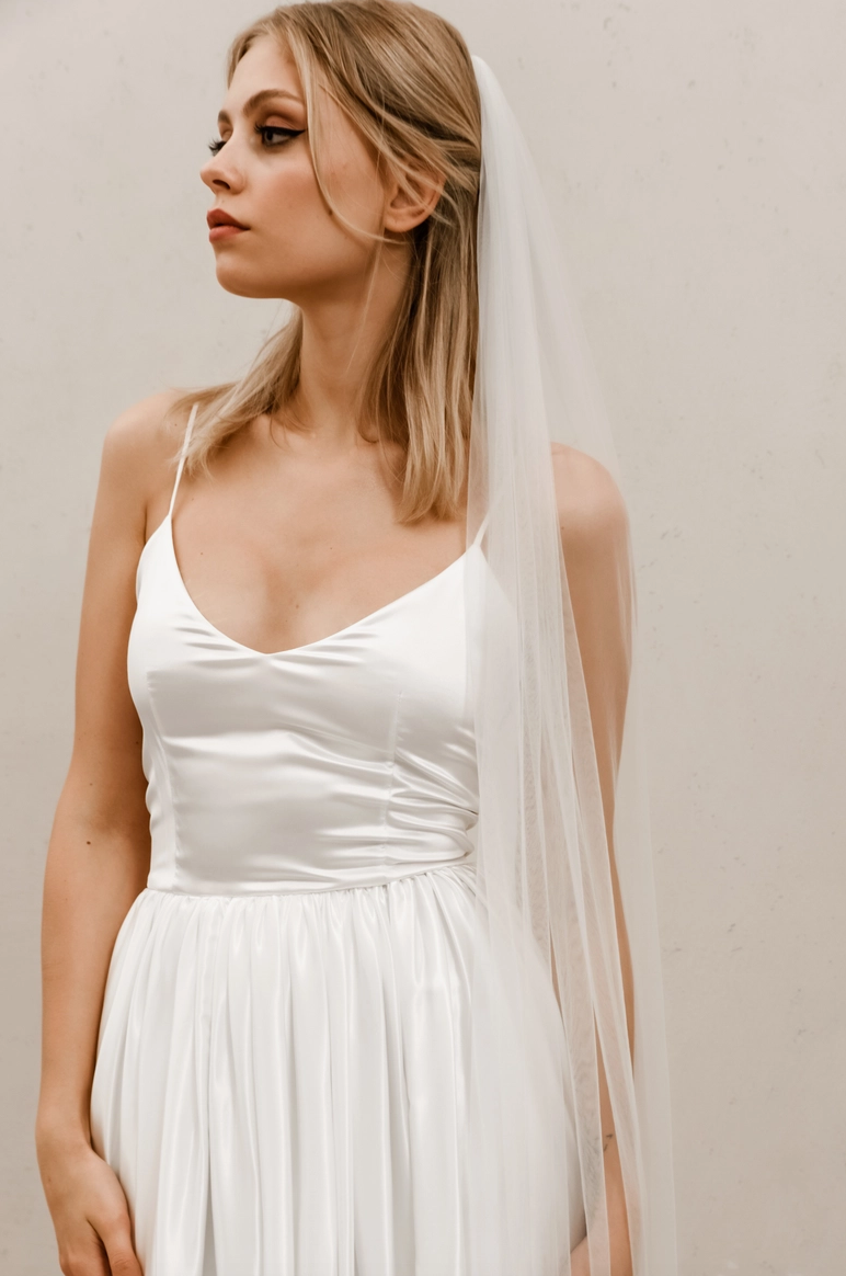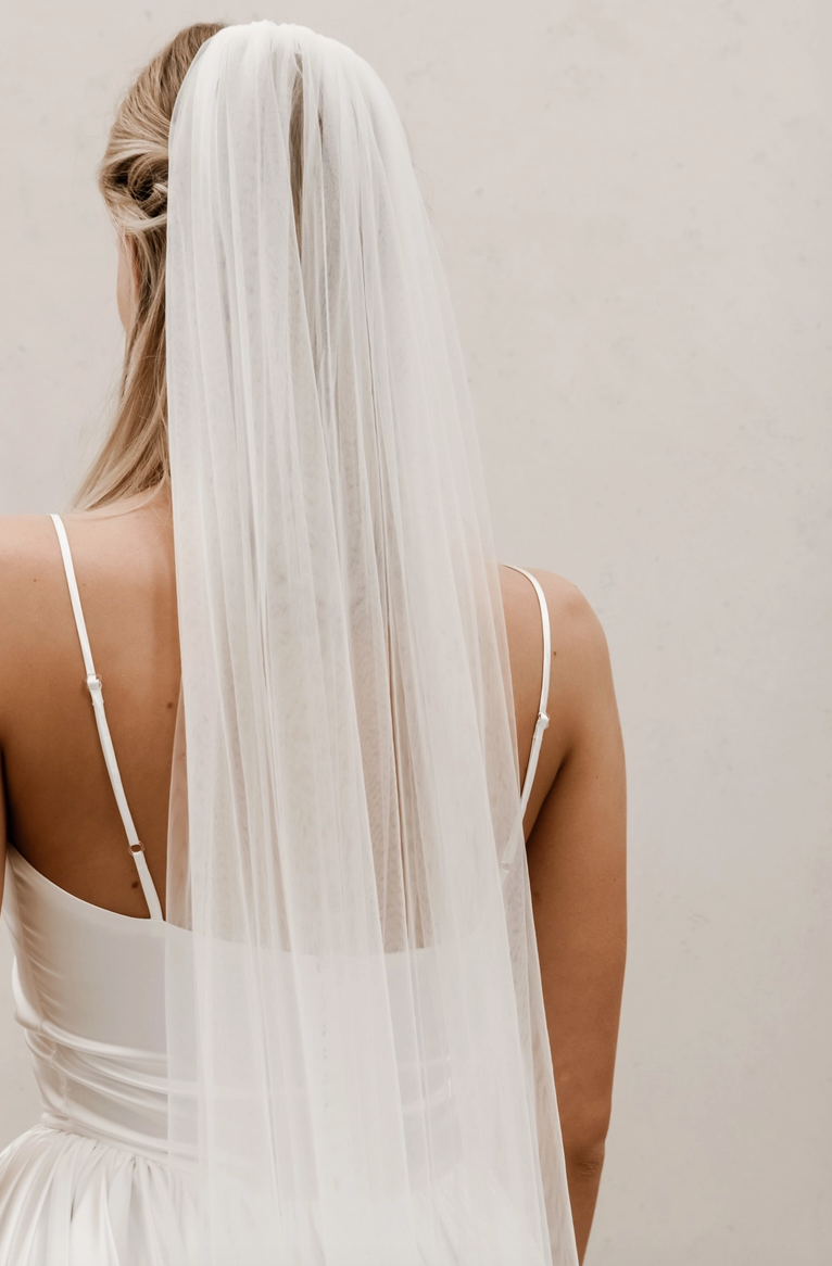 This gorgeous veil compliments any gown and frames any face beautifully. Made in the USA from high quality tulle, this veil will be the perfect piece for your special day.