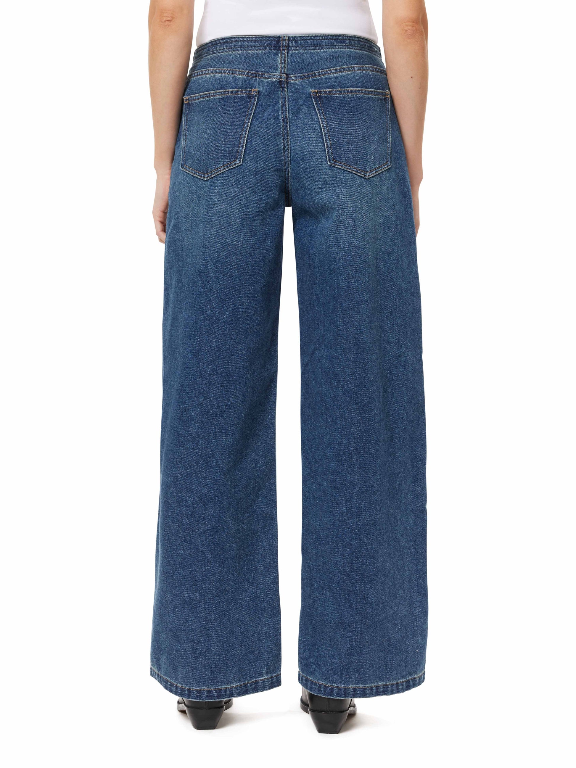 - Fit: Mid Rise with Wide Leg and functional Front and Back Pockets