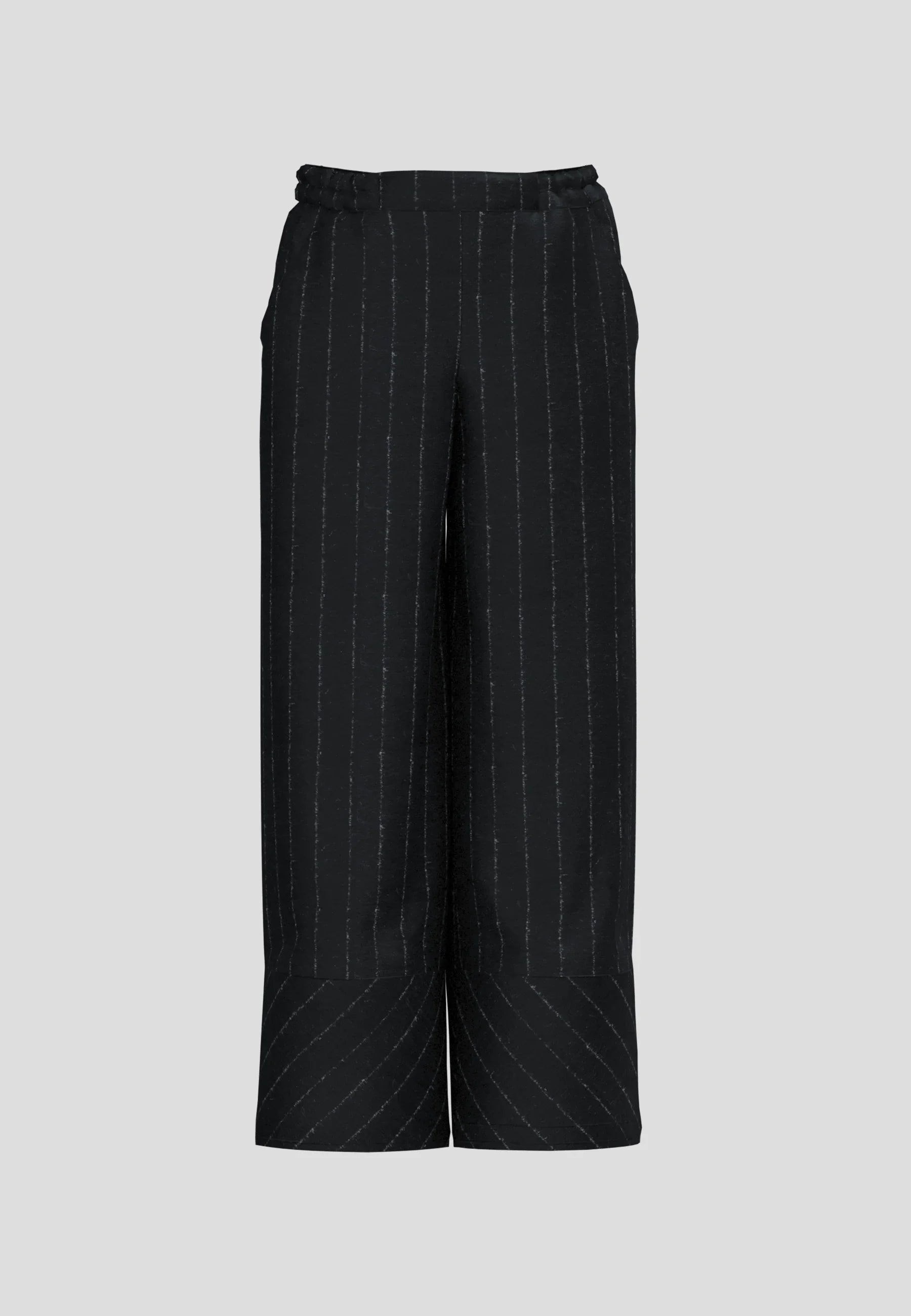 Make a statement with the Illora Striped Felt Pants — a modern take on artistic tailoring. Featuring a distinctive “O” silhouette and a wide, ankle-length cut, these pants bring structure and ease to your look. Crafted from a unique blend of striped wool-blend felt and smooth taffeta, they offer rich texture and contemporary flair. Designed for all-day comfort, the mid-rise elastic waistband ensures a perfect fit, while angled side pockets and added inner-leg fabric prevent friction and enhance wearability.