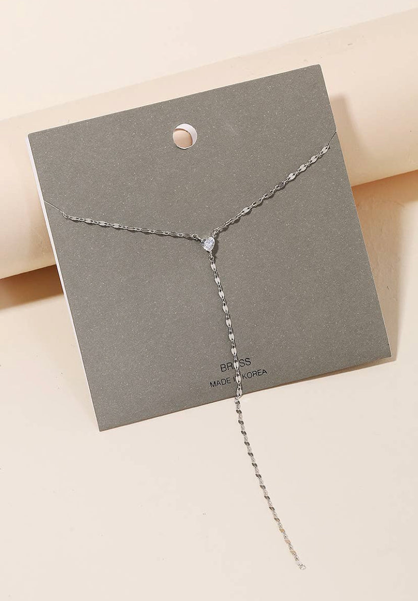 A classic charming must have necklace has a beautiful dainty chain mini heart stud y necklace design. Perfectly fitting for this Spring season