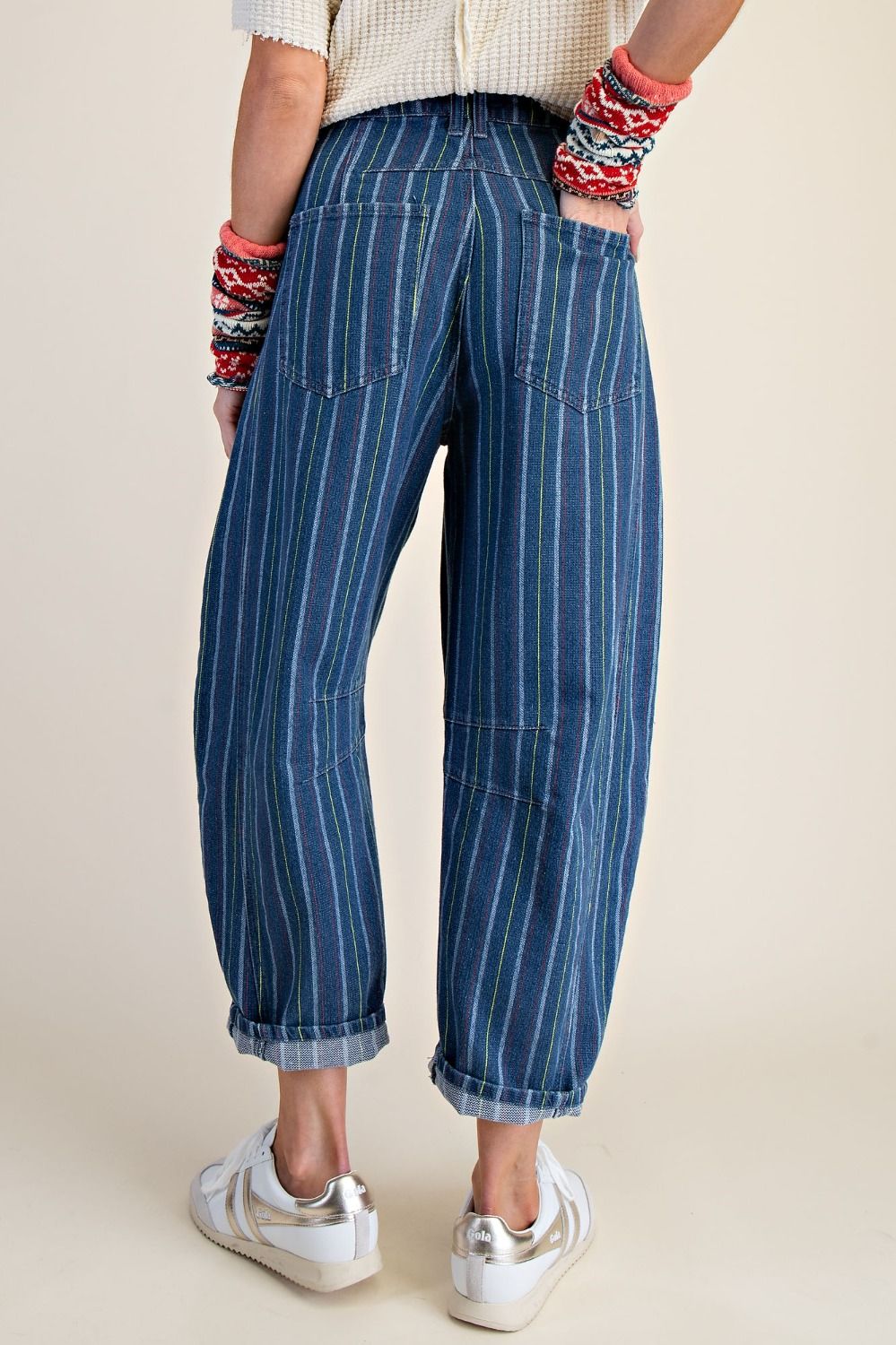 Striped Washed Barrel Denim Pants